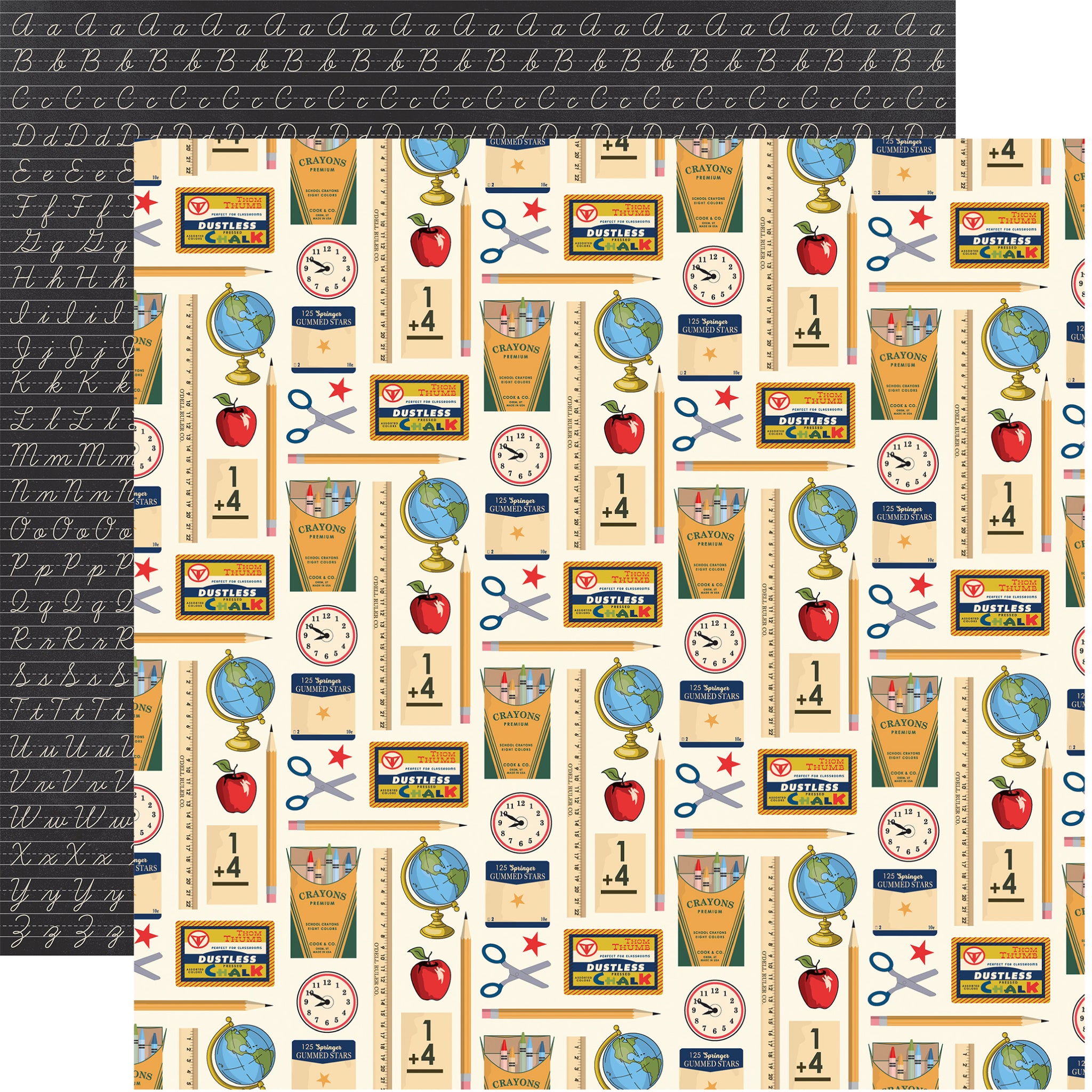 Carta Bella Papers - School Days - Chalkboard Cursive - 2 Sheets